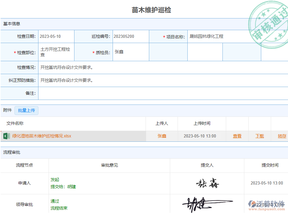 1、通過泛普軟件系統(tǒng)中的苗木檢查單據(jù)將項目上維護管理人員定期檢查的苗木情況進行登記,避免后期出現(xiàn)因為不及時維護養(yǎng)護導(dǎo)致苗木死掉增加項目上的苗木成本。同時如果出現(xiàn)問題也可以快速定位到對應(yīng)的責(zé)任人。