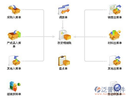 庫存系統(tǒng)包括:自制入庫、入庫成本、其它入庫、領(lǐng)用出庫、其它出庫、商品盤點(diǎn)、商品調(diào)撥以及生成庫存業(yè)務(wù)憑證等業(yè)務(wù)的管理;