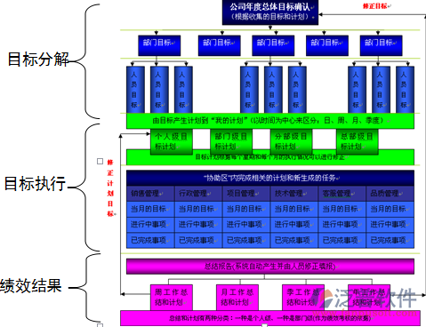 自上而下的建立公司,部門,個人目標;公司和部門的目標可以分解到具體的部門的個人從而形成部門和個人的目標