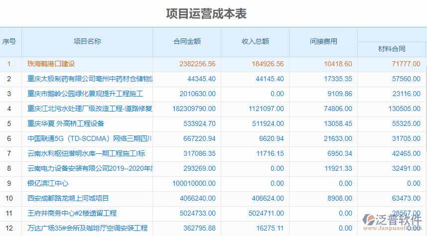 四、泛普軟件—工程造價咨詢管理系統(tǒng)的成本管理模塊列表