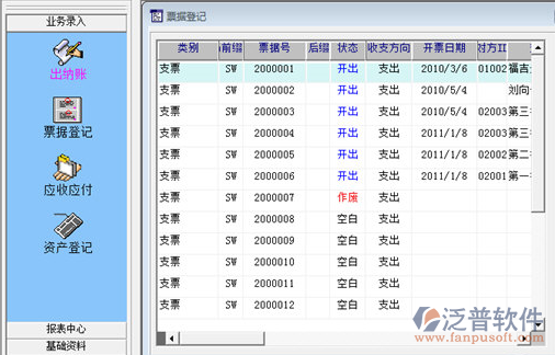 泛普出納管理軟件其他應(yīng)用