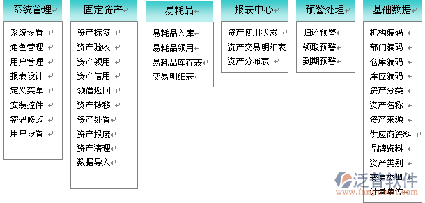 泛普軟件固定資產(chǎn)管理系統(tǒng)有以下功能