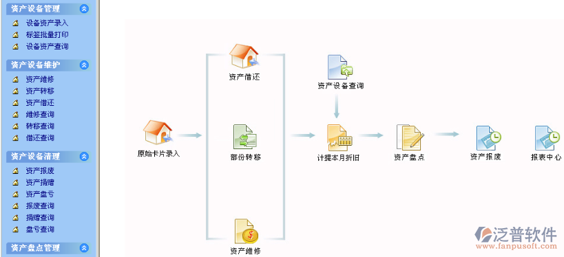泛普軟件固定資產(chǎn)管理系統(tǒng)它適用于企事業(yè)單位對(duì)資產(chǎn)進(jìn)行強(qiáng)化管理,整個(gè)系統(tǒng)按會(huì)計(jì)制度精心設(shè)計(jì):